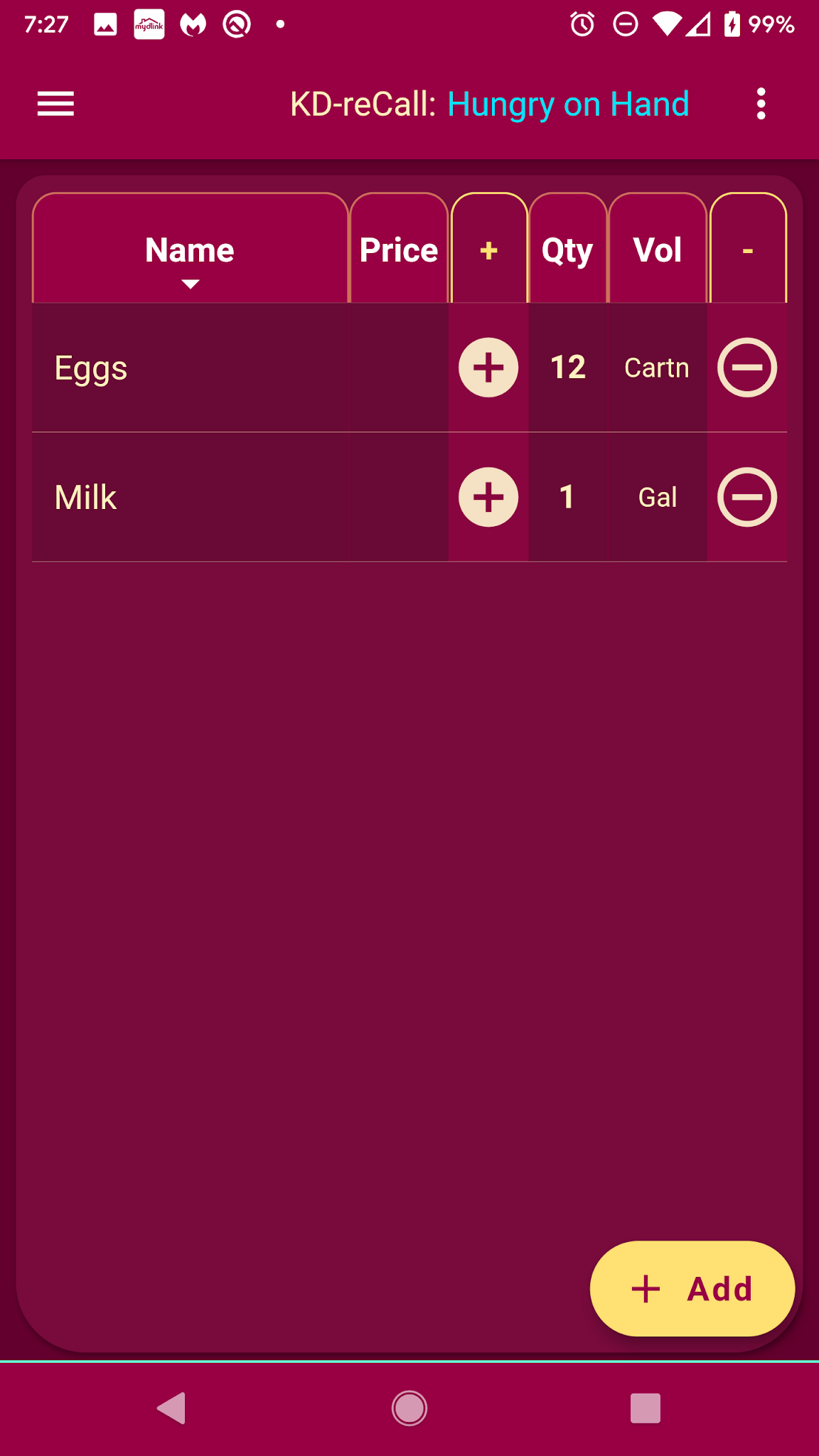 The pilot app for the collection is named Hungry on Hand. Its primary ‘reminder purpose’ is to help folks keep track of snacks or beverages they have on hand. The simplicity of this app’s purpose served to get me through the architectural hurdles I faced, while at the same time tying it to my own custom-built back-end API.
